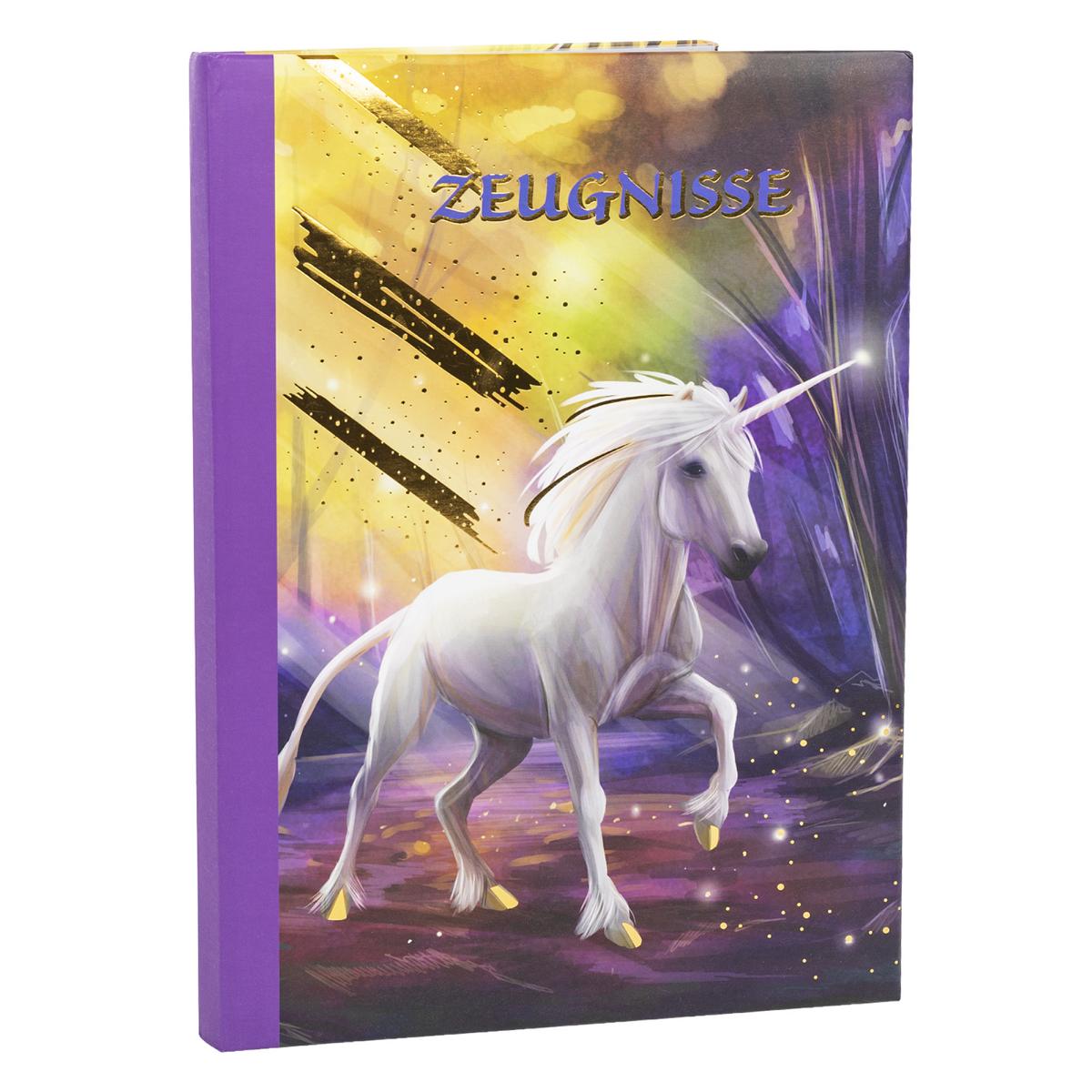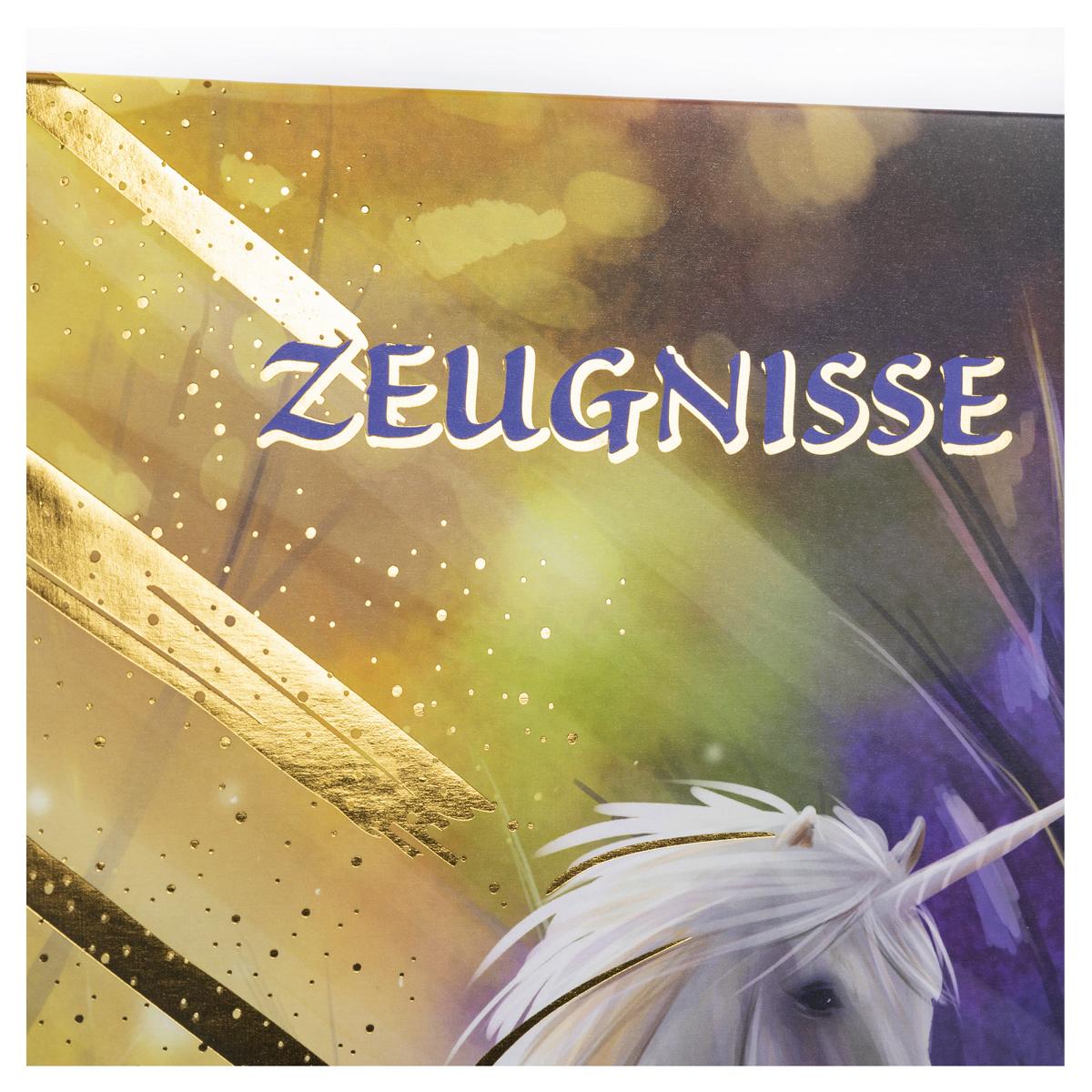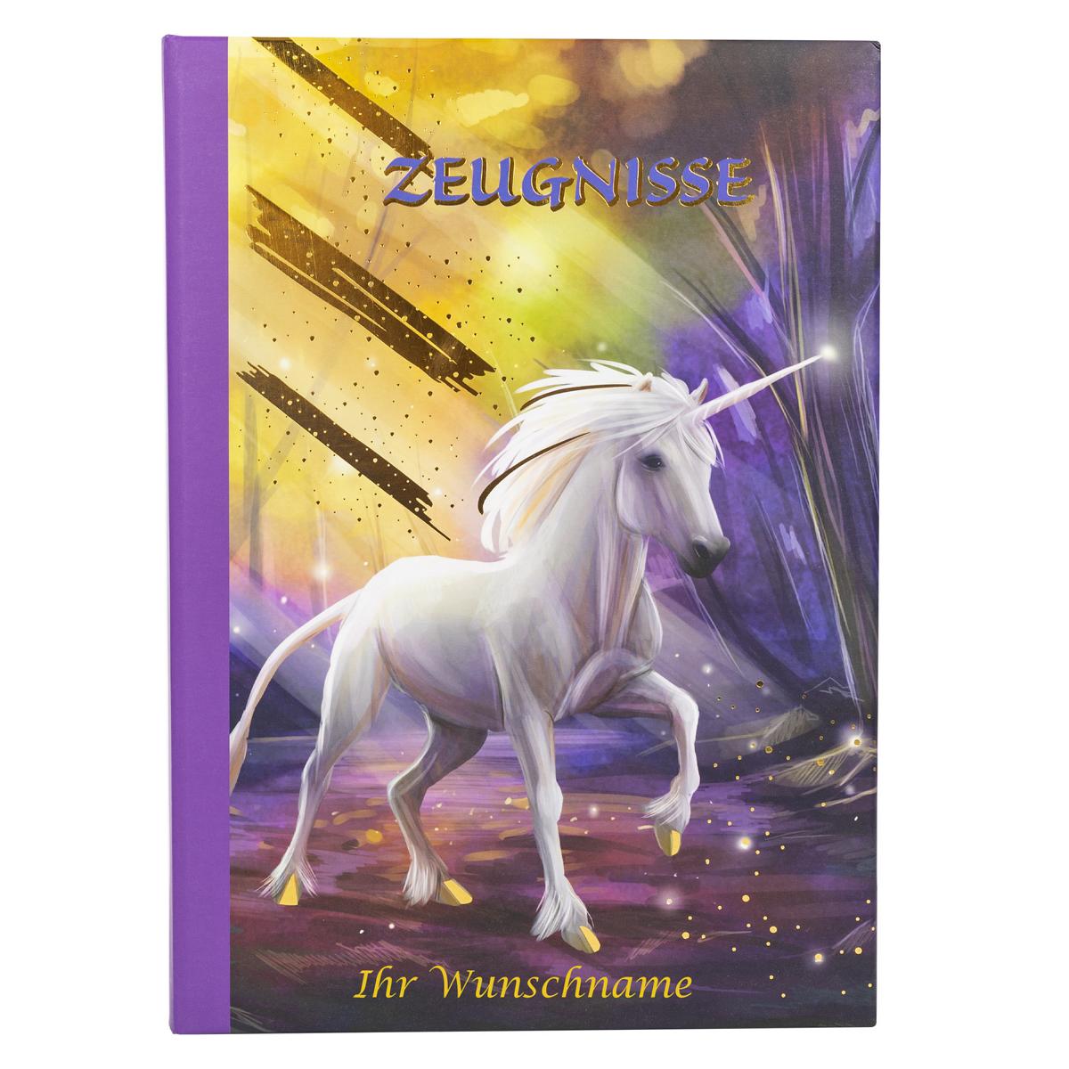 Zeugnismappe mit Gravur / A4 / "Einhorn" / wattierter Einband / mit 12 Hüllen