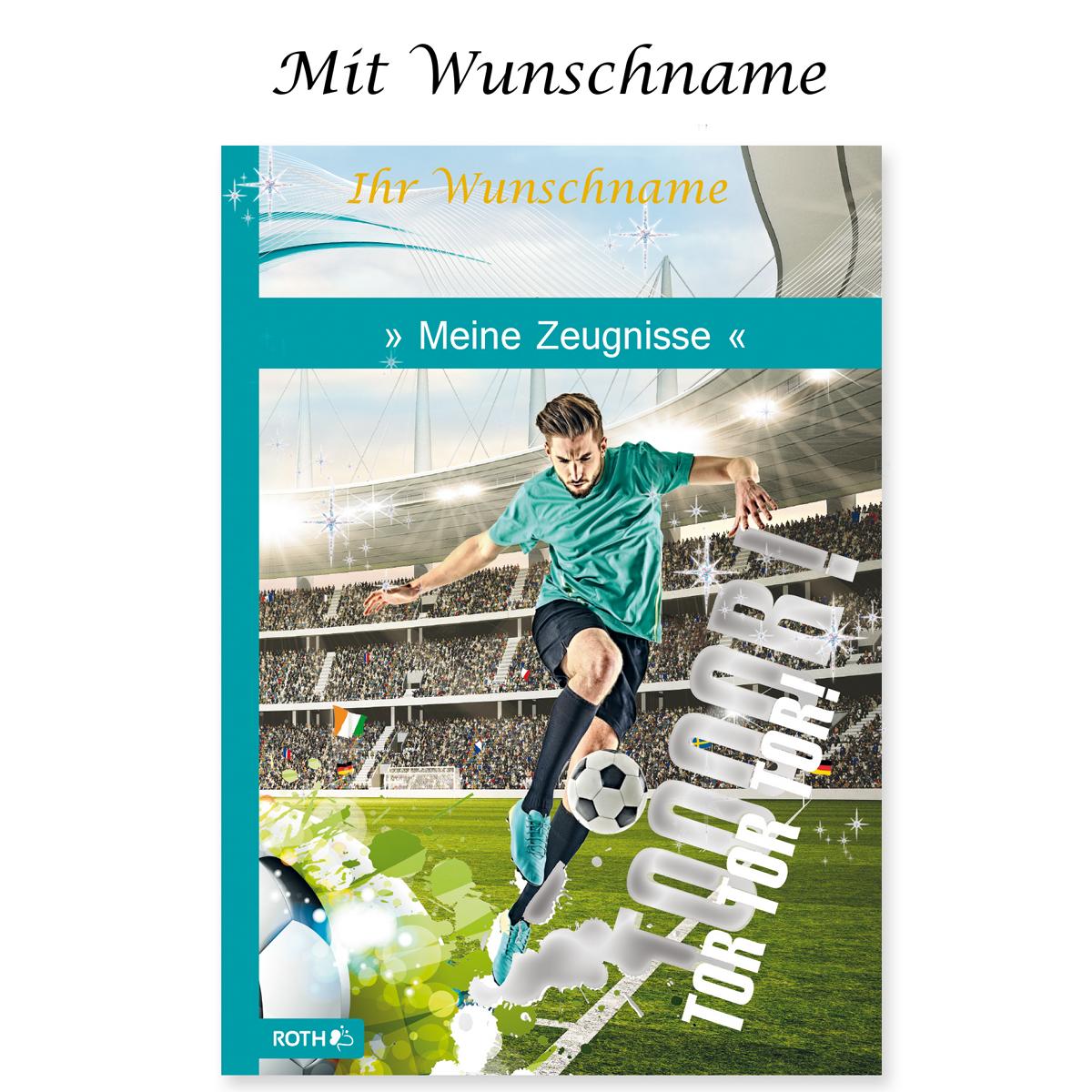 Zeugnismappe mit Gravur / A4 / "Fußball" / wattierter Einband / mit 10 Hüllen