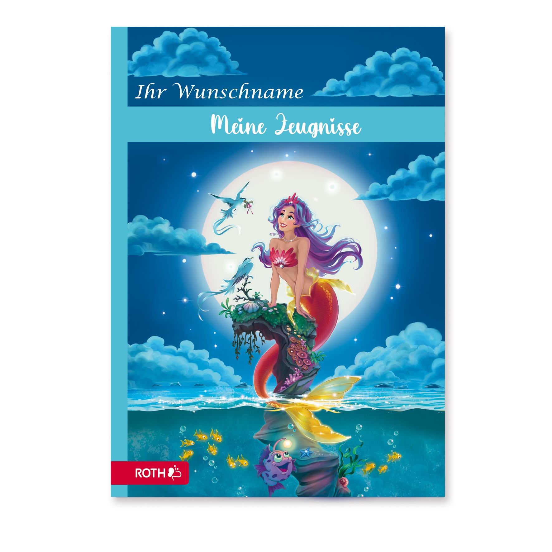 Zeugnismappe mit Gravur / A4 / "Meerjungfrau" / wattierter Einband / 10 Einlagen