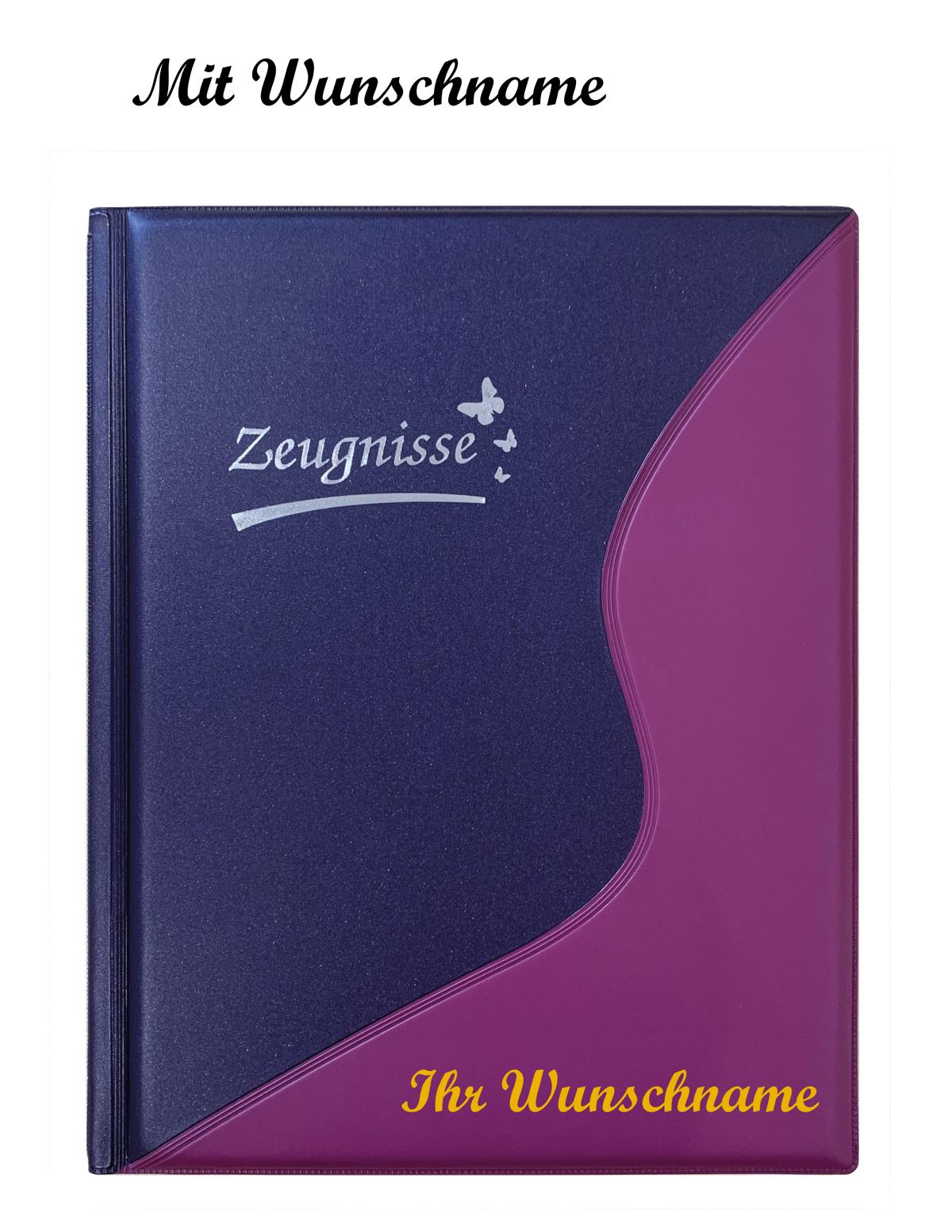 Zeugnismappe mit Namensgravur - mit 12 Hüllen - Farbe: metallic lila