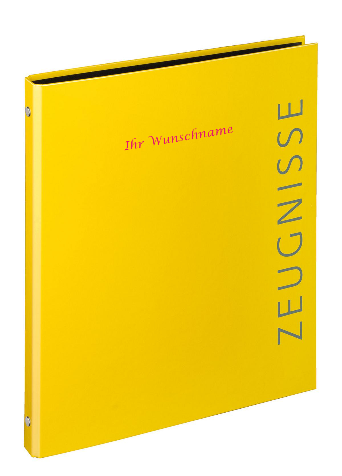 Produktinformationen "Zeugnismappe mit pinkgefärbter Gravur / Zeugnisringbuch / Farbe: gelb"