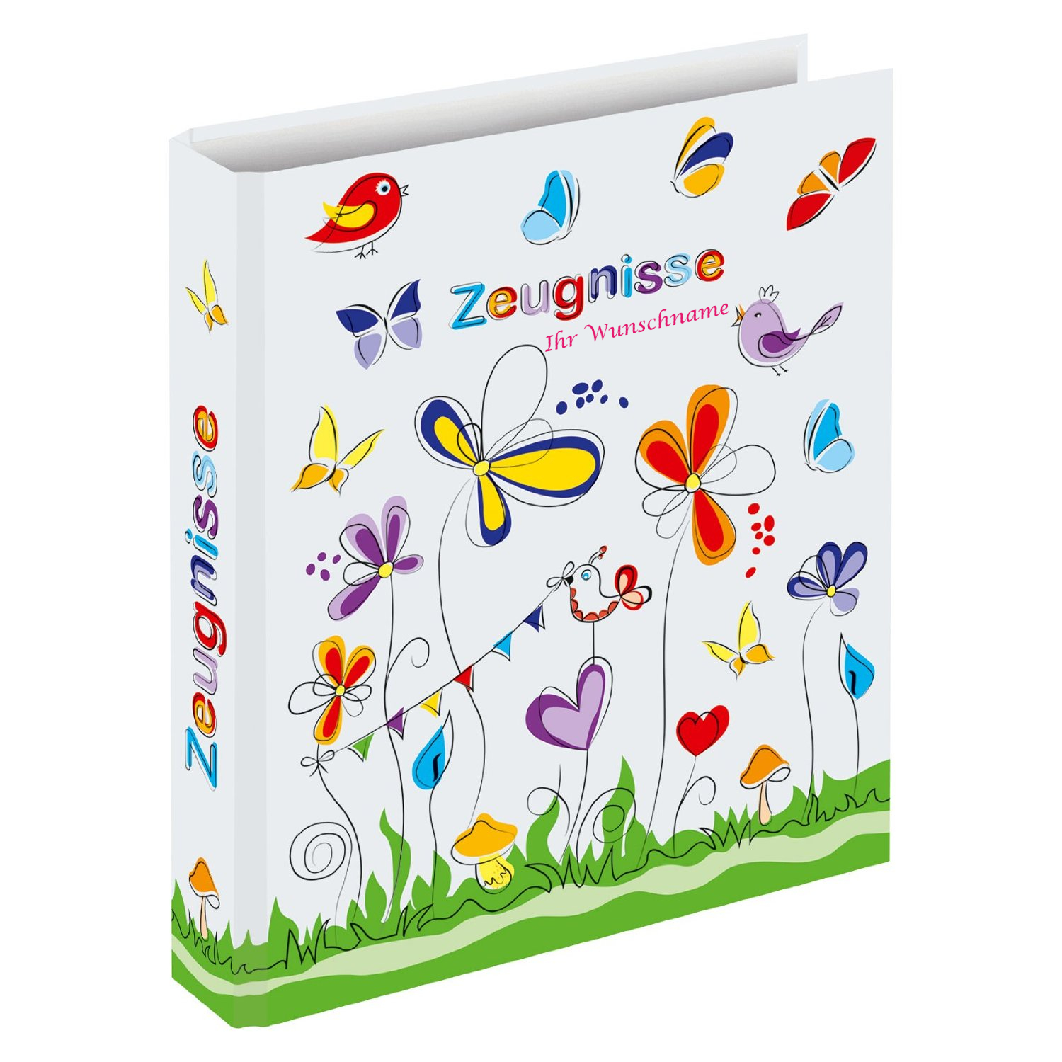 Zeugnismappe mit pinkgefärbter Gravur / Zeugnisringbuch / mit Schmetterlinge
