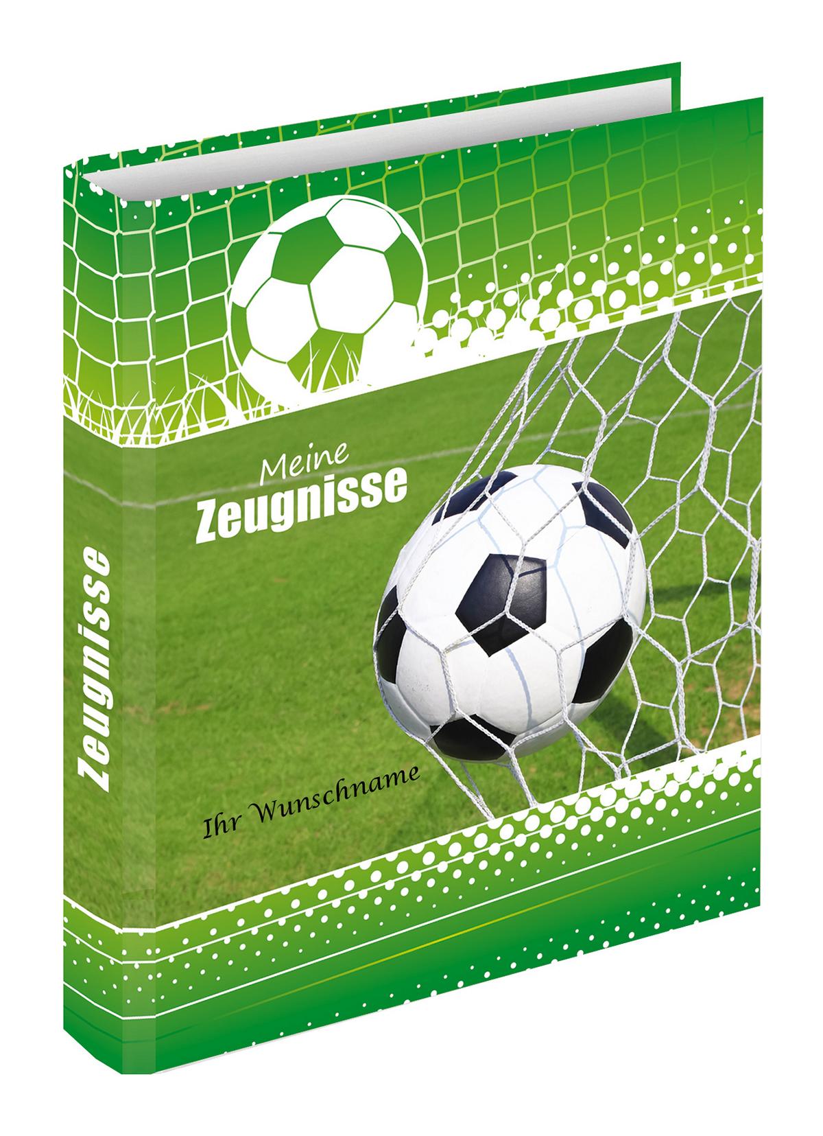 Zeugnismappe mit schwarzgefärbter Gravur / Zeugnisringbuch / "Fußball"