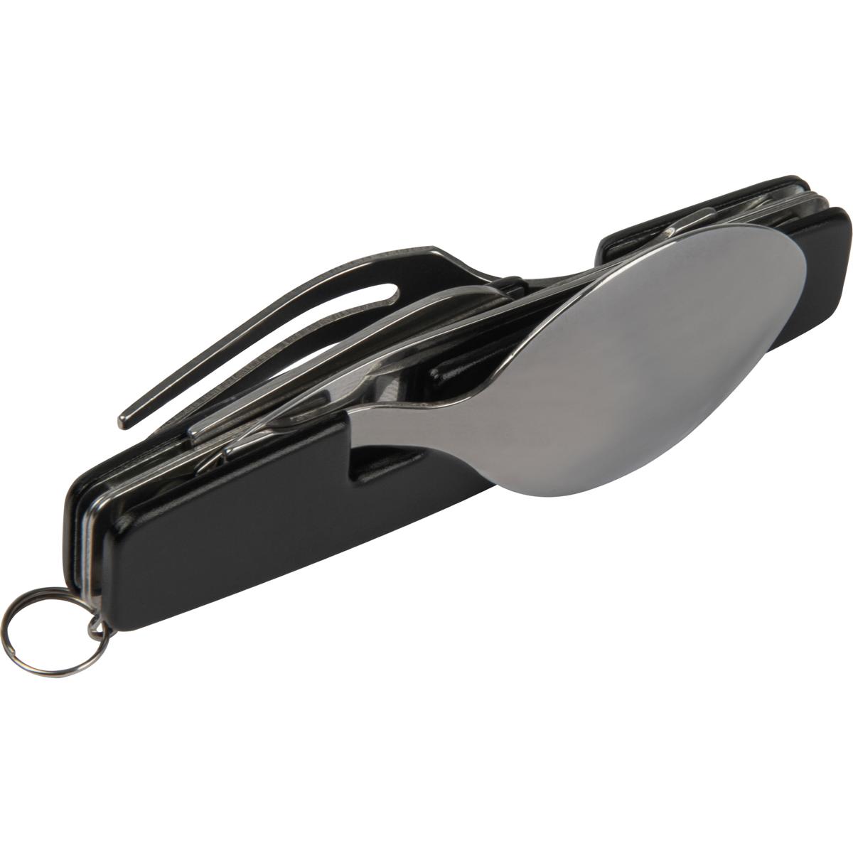 - bestehend aus Löffel, Gabel, Messer, Flaschen- und Dosenöffner